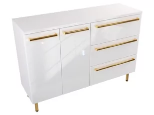 Szafka Stojąca Z Blatem ATH 120 cm DS Prawa - Biały Wysoki Połysk - Uchwyty Złote Polerowane