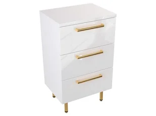 Szafka Stojąca Z Blatem ATH 50 cm - Biały Wysoki Połysk - Uchwyty Złote Polerowane
