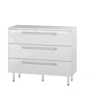 Szafka Stojąca Z Blatem ATH 100 cm - Biały Wysoki Połysk - Uchwyty Stal Szczotkowana