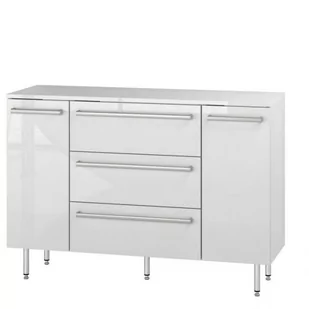 Szafka Stojąca Z Blatem ATH 120 cm D - Biały Wysoki Połysk - Uchwyty Stal Szczotkowana