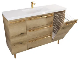 Szafka Stojąca Z Umywalką ATHD 120 cm DK - Dąb Evoke Coast Mat - Uchwyty Złote Polerowane