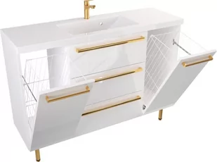 Szafka Stojąca Z Umywalką ATH 120 cm K - Biały Wysoki Połysk - Uchwyty Złote Polerowane