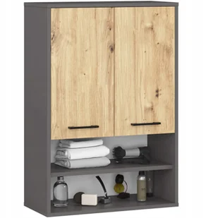 Szafka wisząca łazienkowa FIN 64 cm 2 drzwi 4 półki otwarta - Grafit Szary Dąb Artisan
