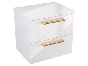 Szafka Wisząca Z Blatem ATH 50 cm - Biały Wysoki Połysk - Uchwyty Złote Polerowane