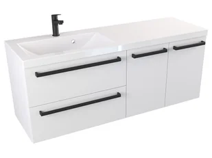 Szafka Wisząca Z Umywalką ATH 120 cm SD Lewa - Biały Mat - Uchwyty Czarne Matowe