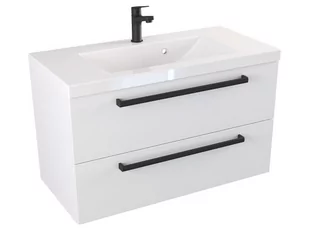 Szafka Wisząca Z Umywalką ATH 80 cm - Biały Mat - Uchwyty Czarne Matowe