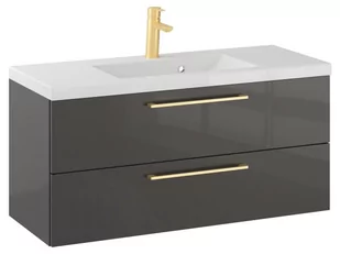 Szafka Wisząca Z Umywalką RON 100 cm - Titan Wysoki Połysk - Uchwyty Złote Szczotkowane