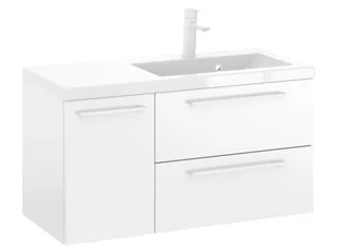 Szafka Wisząca Z Umywalką RON 90 cm D Prawa - Biały Mat - Uchwyty Białe Matowe