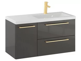 Szafka Wisząca Z Umywalką RON 90 cm D Prawa - Titan Wysoki Połysk - Uchwyty Złote Szczotkowane