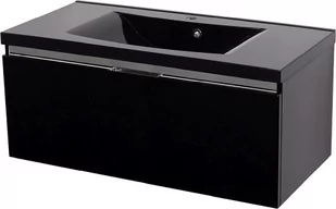 Nowoczesna, bardzo ekskluzywna szafka łazienkowa w czarnym, połyskowym kolorze wraz z prostokątną, czarną, dolomitową umywalką z serii DIAMOND.