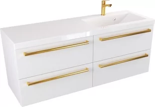 Szafka Wisząca Z Umywalką ATH 120 cm S Prawa - Biały Mat - Uchwyty Złote Polerowane