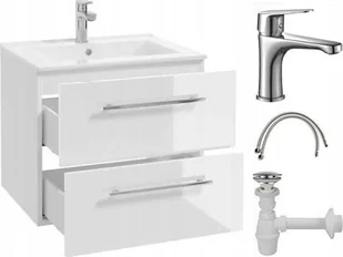 Szafka łazienkowa z umywalką 50x50 wisząca biała Pinia z baterią chrom wydłużoną