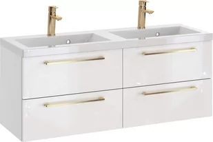 Szafka Wisząca Z Umywalką RON 120 cm DUO - Biały Wysoki Połysk - Uchwyty Złote Szczotkowane