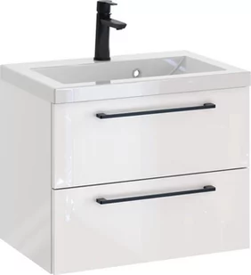 Szafka Wisząca Z Umywalką RON 60 cm - Biały Wysoki Połysk - Uchwyty Czarne Matowe