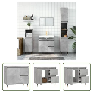 Szafka łazienkowa betonowa szara 65x33x60 cm materiał drewnopochodnyTa szafka łazienkowa będzie świetnym dodatkiem do Twojej łazienki i nada jej schludny i przyciągający wzrok wygląd!Trwały materiał: Drewno inżynieryjne to wyjątkowej jakości materiał o gładkiej powierzchni, który charakteryzuje się wytrzymałością, stabilnością i odpornością na wilgoć. Mnóstwo miejsca do przechowywania: Szafka łazienkowa ma 1 przegrodę z drzwiczkami i 2 szuflady, które oferują różne opcje przechowywania i dodatkową przestrzeń do przechowywania w łazience. Elastyczny montaż drzwi: