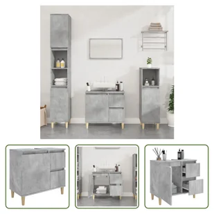 Szafka łazienkowa betonowa szara 65x33x60 cm materiał drewnopochodnyTa szafka łazienkowa to doskonały wybór do utrzymania porządku w łazience!Trwały materiał: Drewno inżynieryjne to wyjątkowej jakości materiał o gładkiej powierzchni, który charakteryzuje się wytrzymałością, stabilnością i odpornością na wilgoć. Mnóstwo miejsca do przechowywania: Szafka łazienkowa ma 2 szuflady i 1 przegrodę z drzwiczkami, które oferują różne opcje przechowywania i dodatkową przestrzeń do przechowywania w łazience. Drewniane nogi: