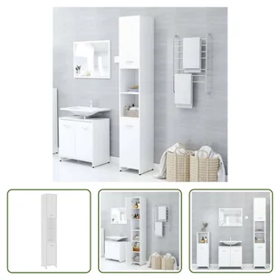 Szafkę można łatwo wyczyścić wilgotną ściereczką. ZaletyTa przyciągająca wzrok szafka łazienkowa z przestronną przestrzenią do przechowywania to świetny dodatek do Twojej łazienki, która od teraz będzie bardziej uporządkowana! Zawartość opakowaniaSzafka łazienkowa biała 30x30x183,5 cm z materiału drewnopochodnego (1x) Dobrze wiedziećTwoje zamówienie zostanie dostarczone w jednej paczce. Gdy tylko zamówienie zostanie pomyślnie zapakowane, natychmiast otrzymasz od nas informacje o dostawie. Mamy nadzieję, że będziesz zadowolony z zakupu. Nasza obietnicaPrzywiązujemy dużą wagę do tego, abyś mógł robić zakupy online bez żadnych zmartwień i kłopotów.