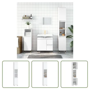 Szafka łazienkowa biała 30x30x190 cm materiał drewnopochodnyTa szafka łazienkowa będzie świetnym dodatkiem do Twojej łazienki i nada jej schludny i przyciągający wzrok wygląd!Trwały materiał: Drewno inżynieryjne to wyjątkowej jakości materiał o gładkiej powierzchni, który charakteryzuje się wytrzymałością, stabilnością i odpornością na wilgoć. Mnóstwo miejsca do przechowywania: Szafka łazienkowa ma 4 przegrody z drzwiczkami i 2 otwarte przegrody, które oferują różne opcje przechowywania i dodatkową przestrzeń do przechowywania w łazience. Elastyczny montaż drzwi: