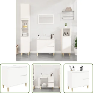 Nogi z litego drewna eukaliptusowego nadają szafce łazienkowej naturalny i przyjemny wygląd, zapewniając jednocześnie stabilność. Elastyczna konstrukcja: Drzwi i szuflady można umieścić po lewej lub prawej stronie, w zależności od potrzeb. Uwaga: Aby zapobiec przewróceniu się tego produktu, należy go zabezpieczyć za pomocą dołączonego wspornika ściennego. Kolor: białyMateriał: