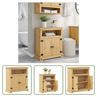 Szafka łazienkowa 70x33x80 cm z litego drewna sosnowegoTa szafka łazienkowa to doskonały wybór do utrzymania porządku w łazience!Trwały materiał: Lite drewno sosnowe to piękny naturalny materiał znany ze swojej trwałości i długowieczności. Jego proste usłojenie nadaje mu atrakcyjny wygląd, a sęki nadają mu rustykalny charakter. Dużo miejsca do przechowywania: Szafka łazienkowa oferuje dużo miejsca do przechowywania niezbędnych przyborów toaletowych i łazienkowych, takich jak mydło, szampon, pasta do zębów itp.