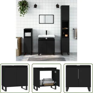 Szafka łazienkowa czarna 58x33x60 cm materiał drewnopochodnyTa szafka łazienkowa będzie świetnym dodatkiem do Twojej łazienki i nada jej schludny i przyciągający wzrok wygląd!Trwały materiał: Drewno inżynieryjne to wyjątkowej jakości materiał o gładkiej powierzchni, który charakteryzuje się wytrzymałością, stabilnością i odpornością na wilgoć. Mnóstwo miejsca do przechowywania: Meble łazienkowe mają 1 dużą komorę z 2 drzwiami, co zapewnia mnóstwo miejsca do przechowywania przedmiotów w łazience. Żelazne nóżki: