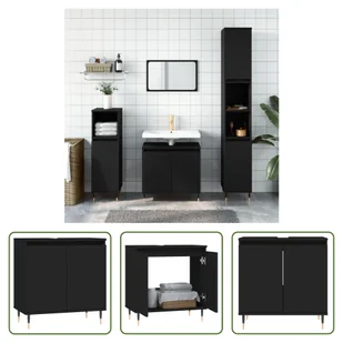 Szafka łazienkowa czarna 58x33x60 cm materiał drewnopochodnyTa szafka łazienkowa będzie świetnym dodatkiem do Twojej łazienki i nada jej schludny i przyciągający wzrok wygląd!Trwały materiał: Drewno inżynieryjne to wyjątkowej jakości materiał o gładkiej powierzchni, który charakteryzuje się wytrzymałością, stabilnością i odpornością na wilgoć. Mnóstwo miejsca do przechowywania: Meble łazienkowe mają 1 dużą komorę z 2 drzwiami, co zapewnia mnóstwo miejsca do przechowywania przedmiotów w łazience. Żelazne nóżki: