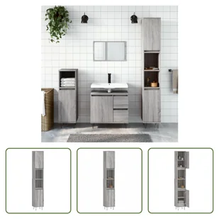 Śruby i kołki rozporowe do mocowania do ściany nie są dołączone. Zalecamy znalezienie i użycie śrub i kołków rozporowych odpowiednich do ścian. W razie wątpliwości należy skonsultować się ze specjalistą. Przeczytaj i postępuj zgodnie z każdym krokiem instrukcji. ZaletyTa szafka łazienkowa jest doskonałym dodatkiem do łazienki i nadaje jej schludny i przyciągający wzrok wygląd! Zawartość opakowaniaSzafka łazienkowa szara Sonoma 30x30x190 cm z materiału drewnopochodnego (1x) Dobrze wiedziećTwoje zamówienie zostanie dostarczone w jednej paczce.