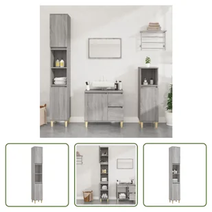 Szafka łazienkowa szara Sonoma 30x30x190 cm materiał drewnopochodnyTa szafka łazienkowa będzie świetnym dodatkiem do Twojej łazienki i nada jej schludny i przyciągający wzrok wygląd!Trwały materiał: Drewno inżynieryjne to wyjątkowej jakości materiał o gładkiej powierzchni, który charakteryzuje się wytrzymałością, stabilnością i odpornością na wilgoć. Mnóstwo miejsca do przechowywania: Meble łazienkowe mają 6 przegródek i 2 drzwiczki, tworząc dodatkową przestrzeń do przechowywania różnych przedmiotów w łazience. Drewniane nogi: