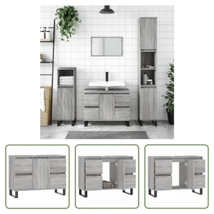 Możesz zamontować drzwi po lewej lub prawej stronie, w zależności od potrzeb. Żelazne nóżki: Żelazne nóżki nadają wnętrzu industrialny styl, zapewniając jednocześnie stabilność szafki łazienkowej. Uwaga: Aby zapobiec przewróceniu się, produkt należy przymocować za pomocą dołączonego uchwytu ściennego. Kolor: Szary SonomaMateriał: