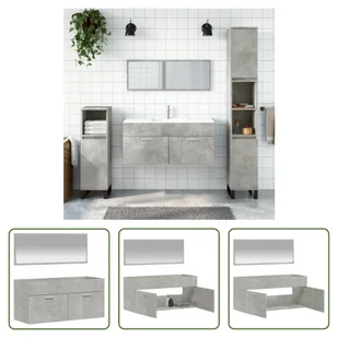 Szafka łazienkowa z lustrem beton szare tworzywo drewnopochodneTa stylowa szafka łazienkowa z lustrem będzie doskonałym dodatkiem do Twojej łazienki, nadając jej schludny i przyciągający wzrok wygląd!Trwały materiał: Drewno inżynieryjne to wyjątkowej jakości materiał o gładkiej powierzchni, który charakteryzuje się wytrzymałością, stabilnością i odpornością na wilgoć. Ta szafka łazienkowa wykonana z drewna jest solidna i trwała. Dużo miejsca do przechowywania: Szafka łazienkowa oferuje dużo miejsca do przechowywania przyborów łazienkowych.
