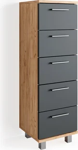 Szafka łazienkowa, Instrukcja montażu, Materiały montażowe Szafka łazienkowa Ilias to idealny mebel do Twojej łazienki! Dzięki pięciu pojemnym szufladom oferuje wystarczająco dużo miejsca do przechowywania wszystkich produktów pielęgnacyjnych i przyborów łazienkowych. Jego funkcjonalna konstrukcja sprawia, że zajmuje mało miejsca i idealnie pasuje do każdej łazienki. Cechą szczególną szafki midi Ilias jest to, że jest ona kompatybilna z innymi elementami kolekcji, tworząc jednolity i harmonijny obraz w łazience. Dane techniczne: Kolory: Dąb, Antracyt Wymiary: