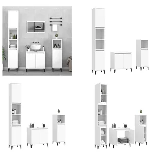 3-częściowy zestaw mebli łazienkowych z drewna w kolorze białymTen stylowy zestaw mebli łazienkowych z dużą ilością miejsca do przechowywania jest doskonałym dodatkiem do Twojej łazienki, nadając jej schludny i przyciągający wzrok wygląd!Trwały materiał: Drewno inżynieryjne to wyjątkowej jakości materiał o gładkiej powierzchni, który charakteryzuje się wytrzymałością, stabilnością i odpornością na wilgoć. Mnóstwo miejsca do przechowywania: Te szafki łazienkowe oferują mnóstwo miejsca do przechowywania przyborów łazienkowych. Metalowe nóżki: