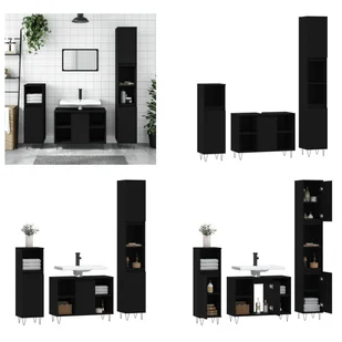 ZaletyTen modny zestaw mebli łazienkowych jest doskonałym dodatkiem do łazienki i nadaje jej schludny i efektowny wygląd! Pozostałe specyfikacjeKolor: CzarnyMateriał: Materiał drewnopochodny, żelazoWymiary szafki łazienkowej (wysoka): 30 x 30 x 190 cm (dł. x szer. x wys.)Wymiary szafki łazienkowej (niskiej): 30 x 30 x 100 cm (dł. x szer. x wys.)Wymiary szafki pod umywalkę: