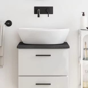 Może on pełnić funkcję półki, wierzchu szafki, blatu biurka lub stołu itd. Wykończona powierzchnia: blat został pomalowany ciemną farbą, dzięki czemu jest gotowy do użytku i żadne dodatkowe zabezpieczenie powierzchni nie jest wymagane. Ręczne wykonanie i naturalna krawędź: blat łazienkowy został wykonany ręcznie z zachowaniem naturalnej krawędzi drewna.
