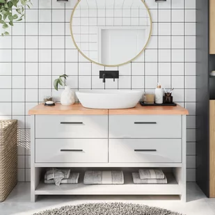 blat łazienkowy został wykonany ręcznie z zachowaniem naturalnej krawędzi drewna. Dzięki temu, że sęki, pęknięcia, lekko zaokrąglone kształty i różne odcienie stanowią unikatowe cechy drewna dębowego, każdy egzemplarz ma swój własny, niepowtarzalny charakter. Wysyłka odbywa się losowo. Kolor: jasnobrązowy Materiał: lite drewno dębowe wykończone lakierem Wymiary: