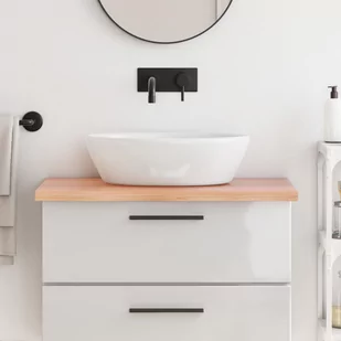 Planujesz wymienić blaty w domu? Ten drewniany blat do łazienki będzie doskonałym wyborem! Wytrzymała konstrukcja: blat łazienkowy wykonano z litego drewna dębowego, czyli pięknego, naturalnego materiału. Drewno to ma odcień średniego brązu oraz zwartą strukturę słojów, co przyczynia się do jego unikatowego wyglądu. Wszechstronne zastosowanie: oprócz wykorzystania tego produktu jako blat w łazience, można go również połączyć z różnymi innymi podstawami.