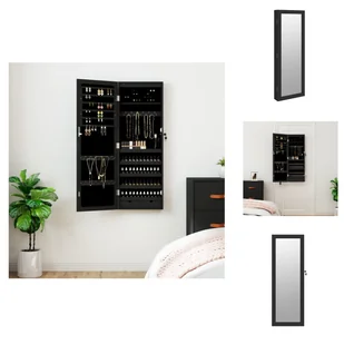 Przechowuj swoją biżuterię i perfumy dyskretnie i elegancko w tej stylowej lustrzanej szafce na biżuterię z oświetleniem LED! Trwały materiał: Drewno inżynieryjne to materiał o wyjątkowej jakości i gładkiej powierzchni, który charakteryzuje się wytrzymałością, stabilnością i odpornością na wilgoć. Wykonana z litego drewna szafka na biżuterię jest łatwa do czyszczenia wilgotną ściereczką. Mnóstwo miejsca do przechowywania: Szafka z lustrem ma 2 szuflady i liczne haczyki, wieszaki i półki, dzięki czemu biżuteria jest uporządkowana i łatwo dostępna.