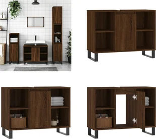 Brązowa szafka łazienkowa o wyglądzie dębu 80x33x60 cm z materiału drewnopochodnegoTa szafka łazienkowa będzie świetnym dodatkiem do Twojej łazienki i nada jej schludny i przyciągający wzrok wygląd!Trwały materiał: Drewno inżynieryjne to wyjątkowej jakości materiał o gładkiej powierzchni, który charakteryzuje się wytrzymałością, stabilnością i odpornością na wilgoć. Mnóstwo miejsca do przechowywania: Meble łazienkowe mają 1 przegrodę z drzwiczkami i 4 otwarte przegrody, które oferują różne opcje przechowywania i dodatkowe miejsce na przedmioty w łazience. Elastyczny montaż drzwi: