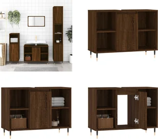 Brązowa szafka łazienkowa o wyglądzie dębu 80x33x60 cm z materiału drewnopochodnegoTa szafka łazienkowa będzie świetnym dodatkiem do Twojej łazienki i nada jej schludny i przyciągający wzrok wygląd!Trwały materiał: Drewno inżynieryjne to wyjątkowej jakości materiał o gładkiej powierzchni, który charakteryzuje się wytrzymałością, stabilnością i odpornością na wilgoć. Mnóstwo miejsca do przechowywania: Meble łazienkowe mają 1 przegrodę z drzwiczkami i 4 otwarte przegrody, które oferują różne opcje przechowywania i dodatkowe miejsce na przedmioty w łazience. Elastyczny montaż drzwi: