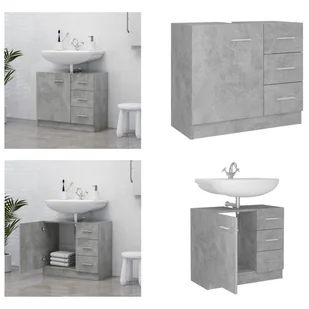 Szafka podumywalkowa betonowa szara 63x30x54 cm materiał drewnopochodnyTa szafka podumywalkowa pozwala stworzyć dodatkową przestrzeń w łazience. Czyste linie i elegancki design idealnie pasują do każdej łazienki. Szafka została wykonana z drewna, dzięki czemu jest solidna i stabilna. Szafka podumywalkowa ma 1 półkę i 3 szuflady, zapewniając różne opcje przechowywania i dodatkowe miejsce na różne przedmioty w łazience. Górna część szafki jest idealna do montażu umywalki.