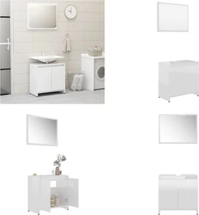 Zestaw mebli łazienkowych z białego drewna o wysokim połyskuStwórz dodatkową przestrzeń do przechowywania w swojej łazience dzięki temu stylowemu zestawowi mebli łazienkowych. Czyste linie i prosty design będą idealnie pasować do Twojej łazienki. Zestaw mebli z lustrem i szafką wykonany jest z trwałego i solidnego materiału drewnopochodnego. Ta elegancka szafka ma 1 półkę i 2 drzwiczki i zapewnia dużo miejsca do przechowywania przedmiotów w łazience. Lustro nadaje wystrojowi domu wyjątkowy wygląd.