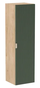 wąska lecz wysoka konstrukcja szafki doskonale wykorzystuje przestrzeń, szczególnie w małych łazienkachcztery półki wewnątrz szafki zapewniają sporo miejsca na ręczniki, środki czystości lub niezbędne akcesoriaryflowany front szafki zestawiony ze złotym, metalowym uchwytem dodaje unikatowego i eleganckiego charakteruszafka posiada możliwość montażu drzwi po lewej lub prawej stronie, co pozwala na dopasowanie szafki do potrzeb Materiały zapewniające trwałość i styl: korpus - laminowana płyta meblowa o zwiększonej trwałości i gęstości około 684 kg/m3 wg badania normy EN 323 odporna na uszkodzeniafront - wysokiej jakości płyta meblowa MDF uszlachetniona tworzywem PVC odporna na uszkodzenia mechaniczne i chemiczneodpowiednio wyselekcjonowane materiały są odporne na działanie wilgoci, co jest niezbędne dla mebli łazienkowych Szafka jest dostępna w poniższych, eleganckich wersjach kolorystycznych. Kliknij w link i zobacz wszystkie kolory szafki . Wymiary szafki: szerokość: 33 cm, głębokość: