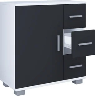 wys. 65 x szer. 60 x gł. 30 cm - Trzy szuflady - Jedne duże drzwi obrotowe i dwie przegrody Dzięki ponadczasowemu i prostemu wzornictwu szafka łazienkowa VCM "Zalo XL" przyciąga wzrok w każdej łazience. Szafka midi z powłoką melaminową jest wyjątkowo łatwa w czyszczeniu i odporna na wilgoć. Szafkę łazienkową można łączyć z innymi meblami łazienkowymi z serii "VCM Zalo". Od lat 70-tych firma VCM specjalizuje się w projektowaniu, produkcji i sprzedaży mebli o uczciwym stosunku ceny do jakości i upiększyła już miliony gospodarstw domowych. ZaloXL wysoka szafka łazienkowa biała, czarna to wysoka szafka łazienkowa w kolorze białym, która wniesie do Twojego domu zarówno styl, jak i funkcjonalność.