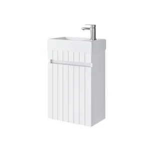Szafka łazienkowa Miseno 40 cm z umywalką ceramiczną w kolorze idealny biały mat to elegancki, kompaktowy zestaw wiszący, który łączy minimalistyczny design z trwałością i funkcjonalnością. Idealna do małych łazienek i toalet gościnnych. Zestaw Miseno składa się z wiszącej szafki łazienkowej oraz ceramicznej umywalki o szerokości 40 cm, co czyni go doskonałym wyborem do niewielkich przestrzeni. Matowe wykończenie w odcieniu idealnej bieli nadaje meblowi świeży, nowoczesny wygląd, który doskonale komponuje się z różnymi stylami wnętrz — od klasycznych po minimalistyczne. Umywalka ceramiczna została wykonana z wysokiej jakości materiałów i pokryta powłoką UP-Clean, która zwiększa odporność na zarysowania i ułatwia utrzymanie czystości.