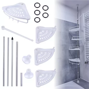 - Biało-metalowy kolor wpasowujący się w każde wnętrze PÓŁKA ŁAZIENKOWA NAROŻNA TELESKOPOWA POD PRYSZNIC 4 PÓŁKI WIESZAKI Na półce znajdują się cztery półki, których wysokość możesz swobodnie regulować i dopasowywać do wysokości kosmetyków, które posiadasz.