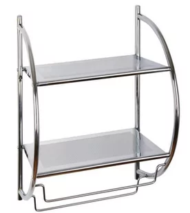 Przedmiotem sprzedaży jest półka do łazienki przeznaczona do powieszenia na ścianie. Wykonana jest ze stali chromowanej. Posiada dwie półki wykonane ze stali perforowanej, oraz u dołu dwa relingi przeznaczone do powieszenia ręczni��ów lub ścierek. Przedmiotową ��ółkę upodobały sobie szczególnie osoby nieposiadające miejsca na postawienie regału łazienkowego, gdyż montującą ��ą zyskały miejsce na wszystkie kosmetyki w łazience, oraz wieszaki na ręczniki. Wymiary 45 x 26 x 54cm.