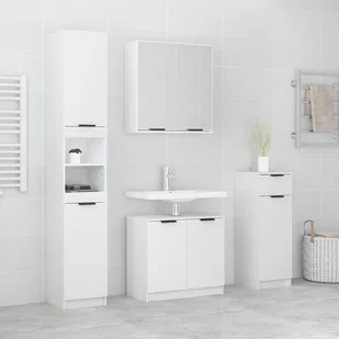 1 x szafka podłogowa1 x szafka podumywalkowa (S)1 x szafka dolna (L)1 x szafka ścienna z lustremDokumenty prawne: Więcej informacji na temat ochrony mebli przed przewróceniem można znaleźć tutaj Ten atrakcyjny zestaw szafek łazienkowych z dużą ilością miejsca do przechowywania charakteryzuje się stylowym i praktycznym designem. Drewno kompozytowe jest niezwykle wysokiej jakości, ma gładką powierzchnię i charakteryzuje się wytrzymałością, stabilnością i odpornością na wilgoć. Mnóstwo miejsca do przechowywania: przestrzeń do przechowywania zestawu mebli łazienkowych pozwala na przejrzystą organizację wszystkich rzeczy.