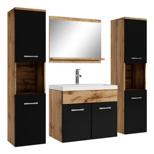 Meble łazienkowe 60cm dąb wotan czarny mat biala umywalka Etna 5 el.