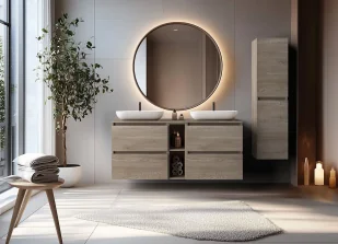 Wyobraź sobie łazienkę, w której każdy detal został stworzony z myślą o Twojej wygodzie. Kolekcja mebli od marki Elior to gwarancja spokoju i relaksu w nowoczesnym wnętrzu, które urzeka swoim minimalistycznym wdziękiem. Gładkie fronty i bezuchwytowe otwieranie podkreślają prostotę designu mebli, sprawiając, że codzienne rytuały stają się prawdziwą przyjemnością. Wystarczy jedno delikatne pociągnięcie, by ciche, płynne prowadnice szuflad odsłoniły ich zawartość, zachowując niezakłócony spokój domowego azylu. Meble to po prostu oaza współczesnej prostoty w Twojej łazience.