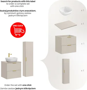 Zestaw meblowy 60cm z blatem, 1 umywalką nablatową Smile i Szafką wysoką